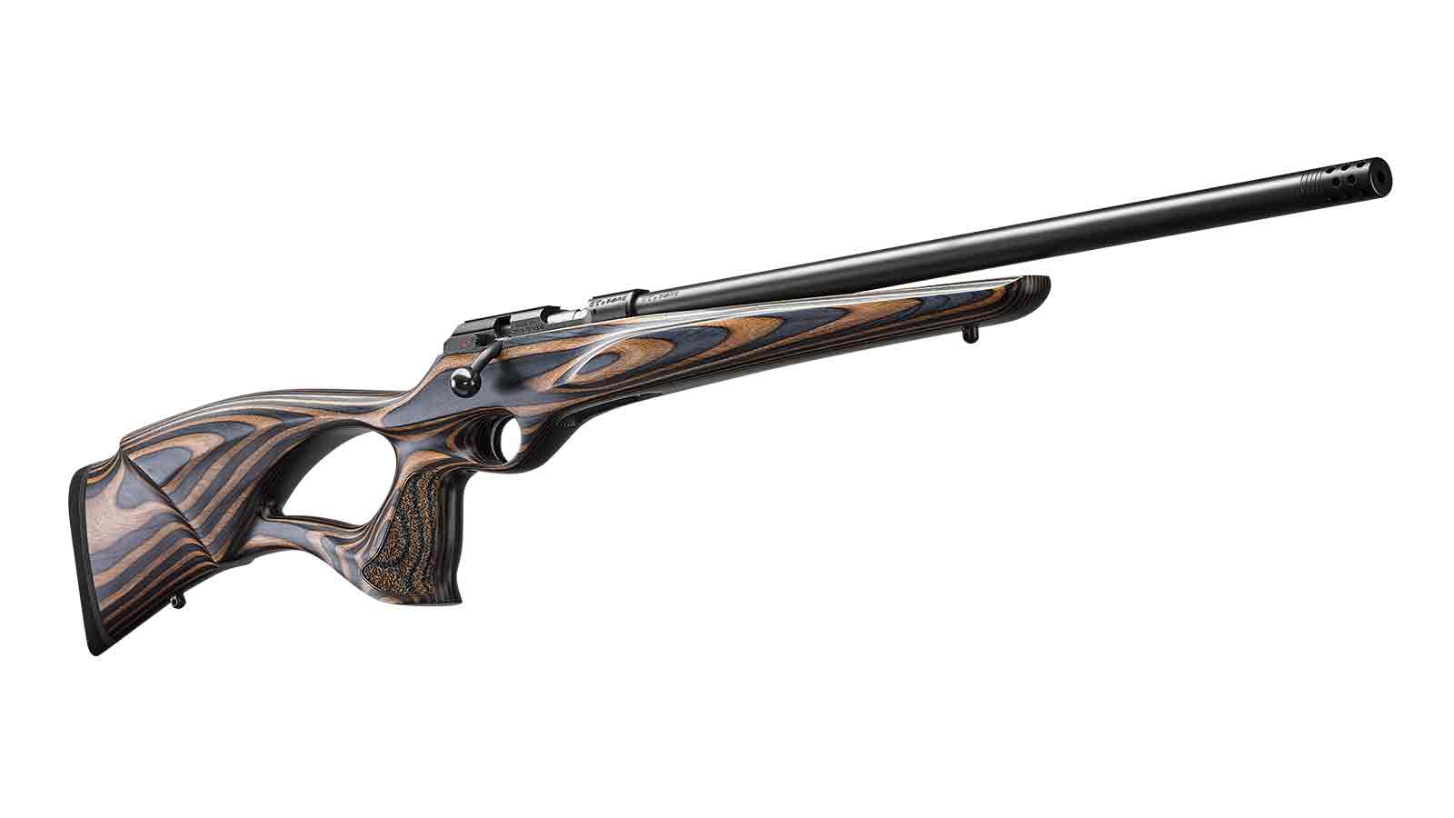 Die immer weiter entwickelten Schaftsysteme, so wie die Waffentechnik im Allgemeinen und die daraus resultierende Harmonie mit diesen beiden wesentlichen Bestandteilen, führen zu dem Erfolg, wie es kein anderer Waffenhersteller schafft. Die CZ 457 Thumbhole Threaded in der 20 Zoll Ausführung ist auf Grund der raffinierten Schaftentwicklung sowohl für Rechts-, als auch für Linksschützen geeignet. Der Schichtholzschaft mit grau-braunem Muster ist ein sehr modernes und innovatives System, um alle Bedienelemente sehr komfortabel zu erreichen. Die Laufmündung des Repetierers 457 ist mit einem 1/2x20 UNF mit wirksamen zylindrischem Kompensator ausgestattet.