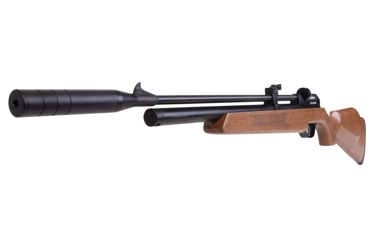 In einer Neuauflage inkl. eingebautem Regulator präsentiert Diana nun das Stormrider PCP Gewehr im Kaliber 5,5mm mit beachtlicher Leistung zu einem sehr gutem Preis Leistungsverhältnis. Das Stormrider-Gewehr kann sowohl mit dem beiliegendem Einzelschuss-Adapter als auch mit dem mitgelieferten 7-Schuss Magazin betrieben werden. Optimaler Halt wird durch den hochwertigen Buchenholzschaft gewährleistet. Die Fischhaut am Pistolengriff und am Vorderschaft versprechen dadurch einen sicheren Grip. Der Maximaldruck des PCP Gewehrs liegt bei 200 bar.Das Gewehr-Modell verfügt über eine 11mm Prismenschiene zur Montage von Zielfernrohre, eine einstellbare Mikrometer-Visierung, eine gummierte Schaftkappe sowie eine manuelle Sicherung.Das Magazin kann mit Diabolos mit einer Länge von bis zu 9,5 mm bestückt werden. Special FeaturesPressluft-TechnologieEinzelschuss & 7 Schuss TrommelmagazinDIT - DIANA Improved TriggerBuchenholzschaft mit FischhautEinstellbare MikrometervisierungGummierte SchaftkappeTank-Volumen 80 mlQuick-Fill StutzenTechnische AnalyseTyp: PressluftgewehrHersteller: Diana / GSGModell: StormriderFarbe: brüniertKaliber: 5,5 mm DiaboloSchusskapazität: 1/7 SchussGewicht: 2300 gLauf: gezogenGesamtlänge: 980 mmGeschossgeschwindigkeit: ca. 120 m/sAntrieb: PressluftIm Lieferumfang enthaltenDiana Stormrider Kaliber 5,5mmEinzelschussadapter7 Schuss MagazinAbschraubbarer SchalldämpferGewindeschonerkleines Dichtungs-KitQuickfill-Stecker (keine Gewinde!)deutschsprachige BedienungsanleitungVerpackt in Kartonage Ab 18 Jahren erhältlich!CO2 Waffen mit einer Energie über 0,5 Joule unterliegen dem Waffengesetzt und müssen eine “F“-Kennzeichnung im Fünfeck haben. Der Erwerb, Besitz und Transport der Waffen ist Volljährigen erlaubt. Sie unterliegen jedoch dem Führverbot (§42 a WaffG).