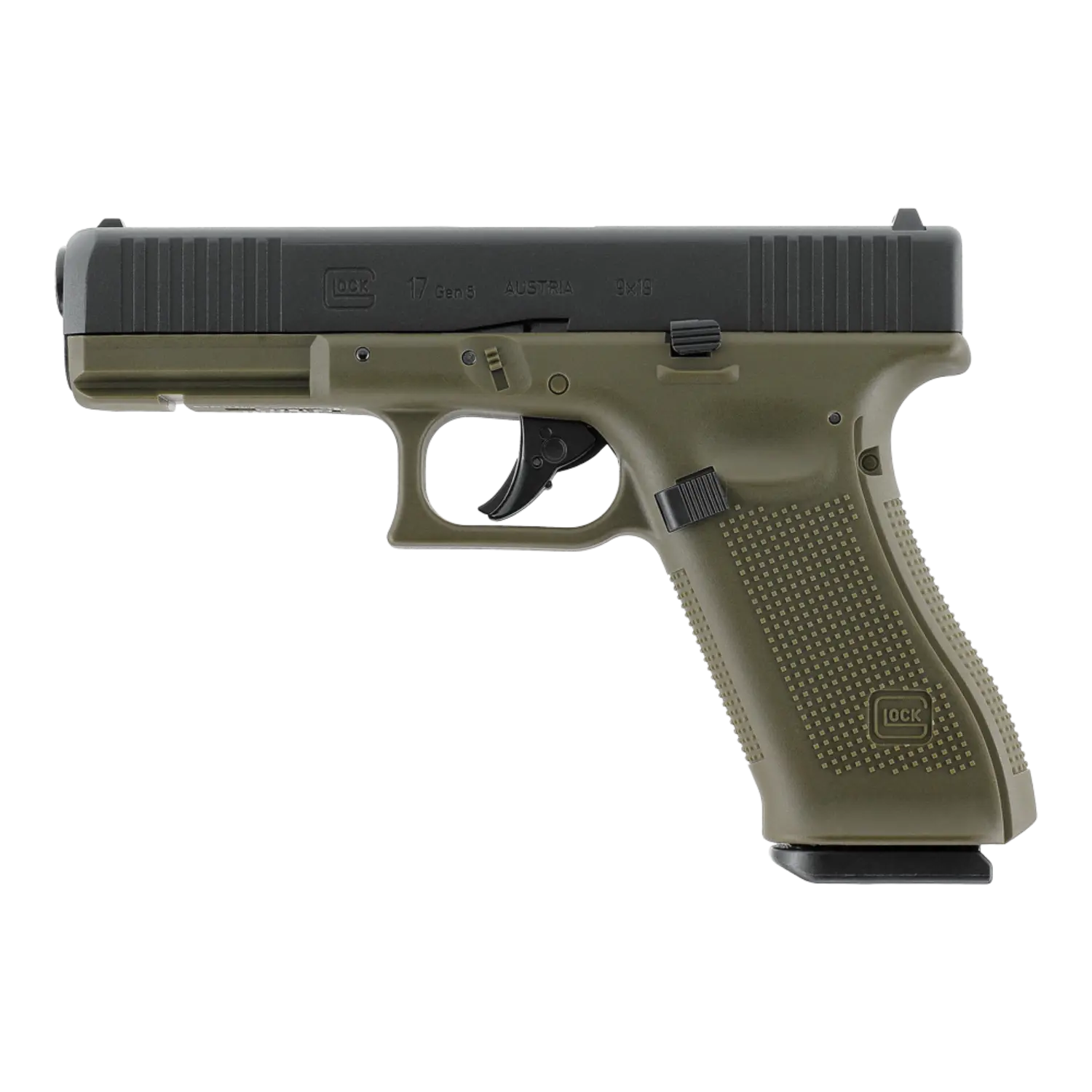 Ein absoluter Eyecatcher ist die Glock 17 Gen5 BLK-COY mit dem Coyote-Farbton des Griffstücks und dem schwarzen Schlitten sowie den Bedienelementen, welche zusammen interessante Kontraste bilden.Beim beliebten Plinking überzeugt die CO₂-betriebene Airgun-Variante der GLOCK 17 Gen5 durch ihre Nähe zum Original. Der kräftige Blowback und der schwere Metallschlitten sorgen für ein realistischen Rückstoß sowie die Gen5-typischen Features wie den Front Serrations, der Weaver-Schiene und der Abzugzüngelsicherung geben Ihr letzteres um an einer authentischen Glock festzuhalten. Die exakte Abmessung und das authentische Gewicht vervollständigen nicht nur das perfekte Handling, sondern ermöglichen eine vollständige Kompatibilität mit gängigem Zubehör. Eine zusätzliche Schiebesicherung erhöht die Bediensicherheit. Technische Details Typ: CO² Pistole Modell: Glock 17 GEN5 MOS Farbe: coyote-black Energiestufe: <3,0 Joule Geschossgechwindigkeit: 115m/s (377fps) Kaliber: 4,5 mm (.177) BB Magazin-/Trommelkapazität: 18 Schuss Schusskapazität: 120 Schuss Abzug: Double Action Sicherung: Abzugzüngelsicherung, Schiebesicherung Gewicht: 680g Gesamtlänge: 203mm Antrieb: 12g CO² Im Lieferumfang enthalten Glock 17 GEN5 BLK-COY CO2 Pistole passendes Magazin Kleines Werkzeugkit Bedienungsanleitung Verpackt in Glock Kartonage Ab 18 Jahren erhältlich ! CO2 Waffen mit einer Energie über 0,5 Joule unterliegen dem Waffengesetzt und müssen eine “F“-Kennzeichnung im Fünfeck haben. Der Erwerb, Besitz und Transport der Waffen ist Volljährigen erlaubt. Sie unterliegen jedoch dem Führverbot (§42 a WaffG).