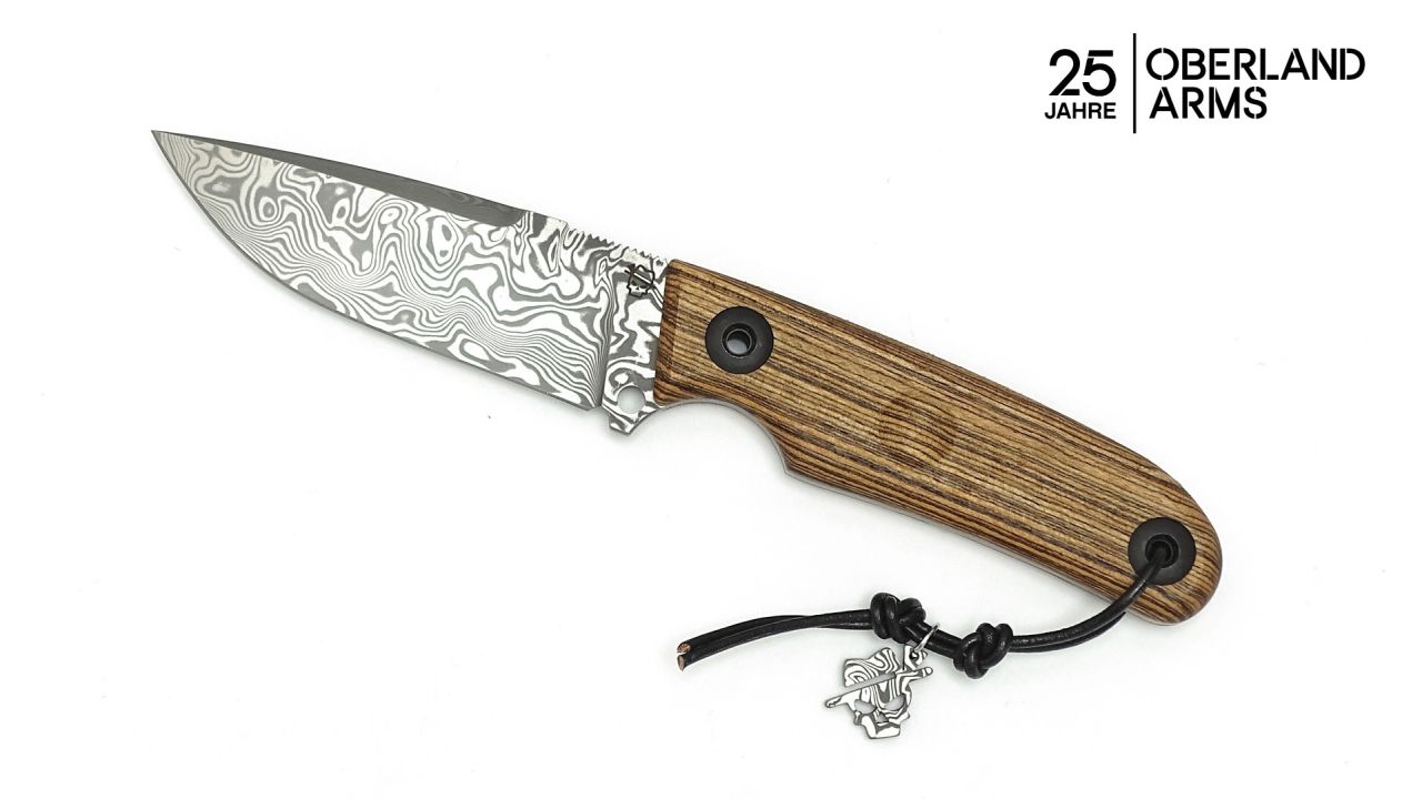 Eine einzigartige und unglaubliche Messerkunst versteckt sich im Imwoid Sepp Damast. Das streng auf nur 25 St. limiterte Jubiläumsmesser besteht aus einer 9,5cm langen Damaststahl Vinland Klinge. Oberland Arms hat keine Kosten gescheut und dieses Jubiläumsmesser bei der Messer-Manufaktur Viper/Tecnocut (designed by Tommaso Rumici aus Italien) gefertigt. Schöne gemaserte Holzgriffschalen aus Bocote Holz und hochfunktionaler Messerscheide mit Lock.