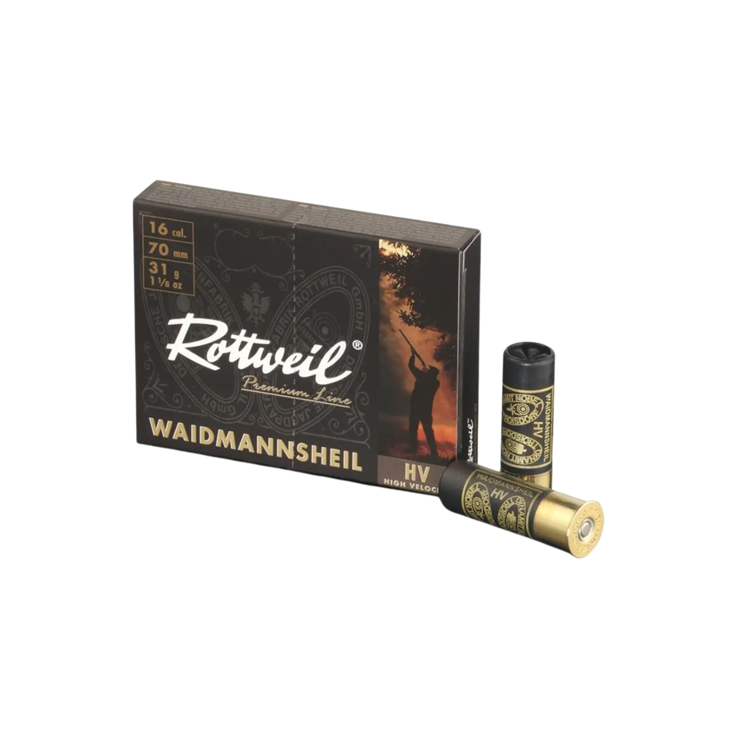 Erfahrung, technische Kompetenz sowie exzellente Qualität machen Rottweil Schrotpatronen zu kleinen technischen Meisterwerken, bei denen vom Pulver bis zur Schrotladung alles genau zusammenwirkt. Alle Bestandteile der Patrone werden sorgfältig aufeinander abgestimmt und ständig kontrolliert. Dies sorgt für die gewünschte Reichweite, Streuung und Wirkung auf das zu erlegende Wild. Rottweil Schrotpatronen zeichnen sich durch Gleichmäßigkeit und ausgezeichnete Treffsicherheit aus. Erfahrene Jäger verlassen sich millionenfach auf die Markenprodukte von Rottweil. Nicht umsonst ist die "Rottweil Waidmannsheil schwarz Pappe" seit Jahrzehnten die klassische Jagdpatrone im Programm.