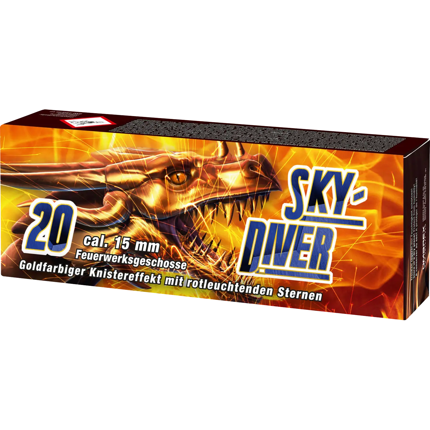 Der Umarex Sky Diver bringt echtes Show-Feeling in den Himmel. Mit 20 Patronen im Kaliber 15 mm entfaltet sich ein spektakuläres Zusammenspiel aus Leucht- und Soundeffekten. Ein funkelnder Aufstieg mit rot blinkenden Sternen mündet in ein goldglitzerndes Bukett, begleitet von Knistergeräuschen, die den Effekt akustisch verstärken. Die 15mm Pyrotechnik wird auf einen Abschussbecher jeder beliebigen Schreckschusswaffe gesteckt. Gezündet wird das Sound- und Effektfeuerwerk mittels Platzpatronen.